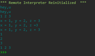 1 # print输出的几种用法 2 3 #用法1:用于输出单个字符串或单个变量 4 print('hey,u') 5 6 #用法2: 用于输出多个数据项,用逗号分隔 7 print('hey,u') 8 x,y,z = (1,2,3) 9 print(x,y,z) 10 11 #用法3: 用户混合字符串和变值量 12 print('x = %d, y = %d, z = %d' %(x,y,z)) # 方式1:传统c风格 13 print('x = {}, y = {}, z ={}'.format(x,y,z)) #方式2: s.format(方法) 14 print(f'x = {x}, y = {y}, z = {z}') #方法3: f-string方式 15 16 #其他: 输出后是否换行 17 print(x) #默认输出后换一行 18 print(y) 19 print(z) 20 21 print(x, end=' ') #输出结束后,不换行:通过end指定数据项之间的分隔符 22 print(y, end=' ') 23 print(z, end=' ')