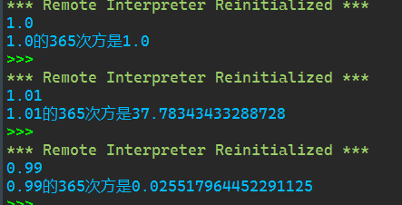 1 x = float(input()) 2 y = x**365 3 4 print('{}的365次方是{}'.format(x,y) )
