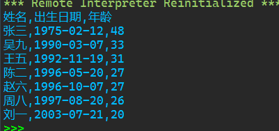 1 def is_valid(a): 2 if len(a) != 18: 3 return False 4 elif (a[:-1].isnumeric() and a[-1] == 'X') or (a.isnumeric()): 5 return True 6 else: 7 return False 8 9 with open('data9_id.txt','r') as f: 10 data = f.read().split('\n') 11 del data[0] 12 data1 = [] 13 print('姓名,出生日期,年龄') 14 for i in data: 15 lst = i.split(',') 16 data1.append(lst) 17 lst1 = [] 18 import datetime 19 t = datetime.datetime.now().year 20 for i in data1: 21 if is_valid(i[1]) == True: 22 name = i[0] 23 btd = i[1][6:14] 24 age = str(int(t)-int(i[1][6:10])) 25 lst1.append([name,btd,age]) 26 lst1.sort(key=lambda x:x[2],reverse=True) 27 for i in lst1: 28 print(i[0],end=',') 29 print(f'{i[1][:4]}-{i[1][4:6]}-{i[1][6:8]}',end=',') 30 print(i[2])