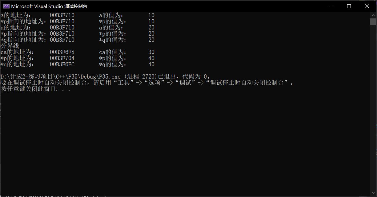cout << "q指向的地址为:" << q << "\tq的值为:\t" << q << endl;