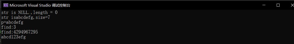 【程序说明】程序中,字符串str在未赋值之前是空串,空串的长度为0。函数c_str()将字符串str转换为const char*,赋给指针p。find()函数是重载函数,有多个含不同参数的版本。 【程序】 【调试结果如下】
