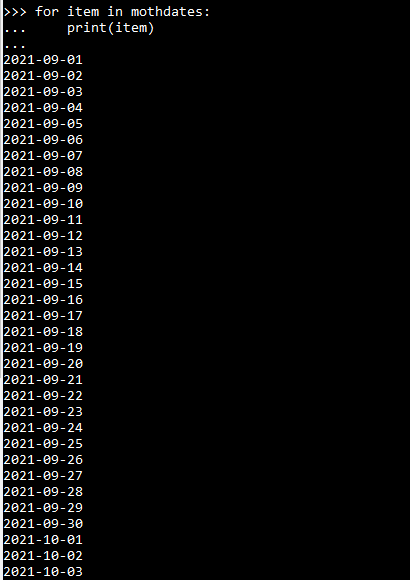 itermonthdates()类似为 year 年 month 月的日期,但不受datetime.date范围的限制。迭代器中的元素为一个由日期和代表星期几的数字组成的的元组。![]()
