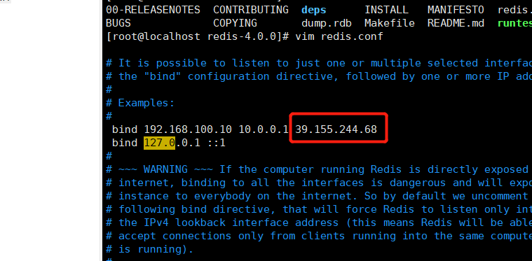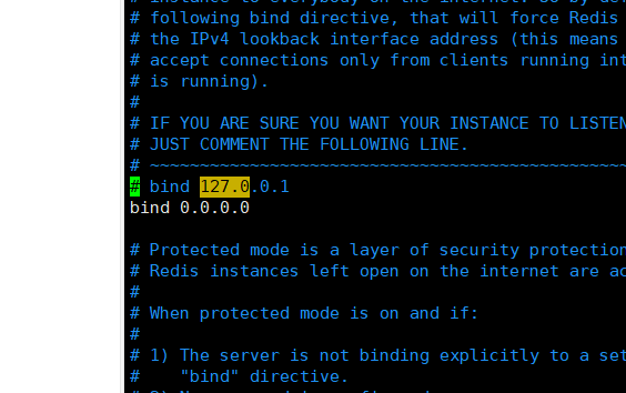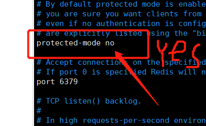 在绑定的端口之后需要添加服务器的地址,外网可以访问到的, 需要将protected-mode no 修改为 yes 意思是可以被访问