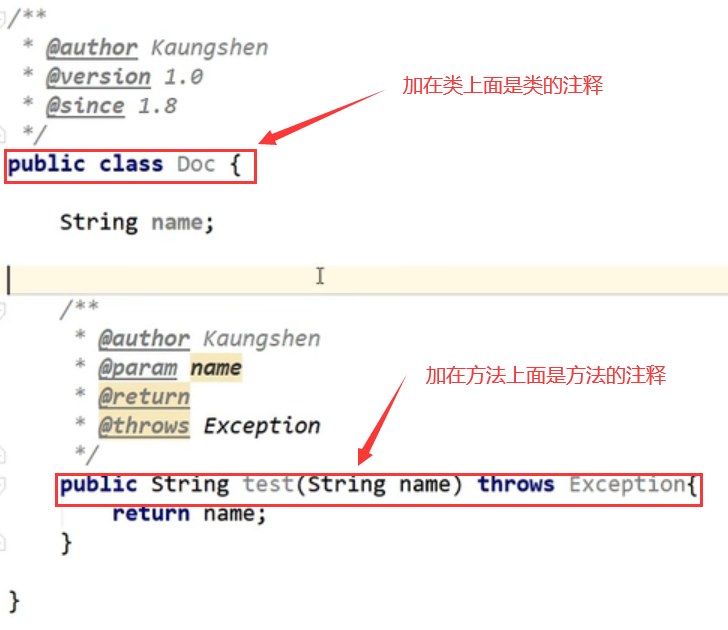 在IDEA中输入/**会自动生成多行注释,加入Exception后在输入多行注释。可生成参数name和返回值