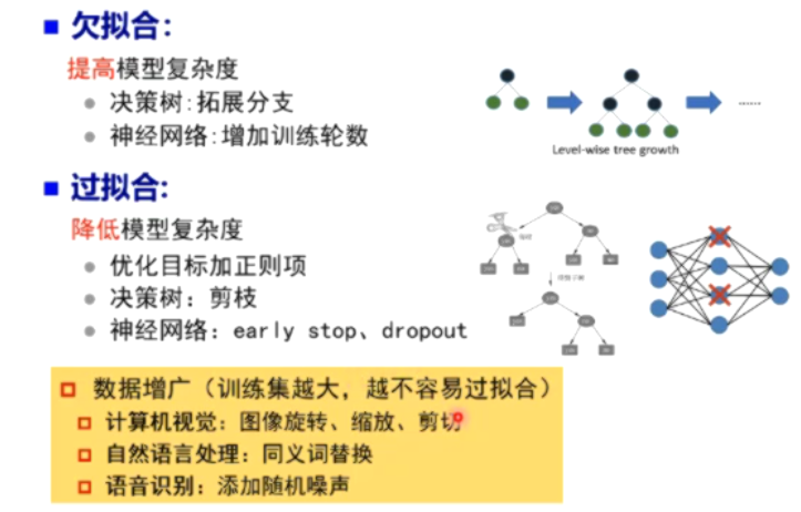12、欠拟合:训练集的一般性质尚未被学习器学好(训练误差大)