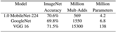 表3 MobileNet与GoogleNet和VGG16性能对比