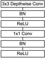 前面讲述了depthwise separable convolution,这是MobileNet的基本组件,但是在真正应用中会加入batchnorm,并使用ReLU激活函数,所以depthwise separable convolution的基本结构如图3所示。