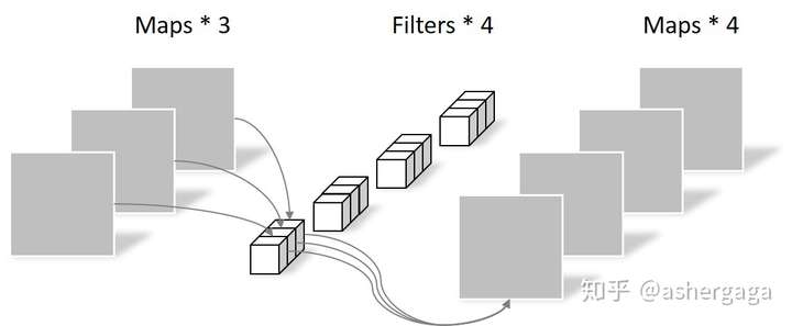 此时,卷积层共4个Filter,每个Filter包含了3个Kernel,每个Kernel的大小为3×3。因此卷积层的参数数量可以用如下公式来计算: