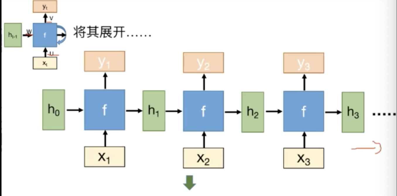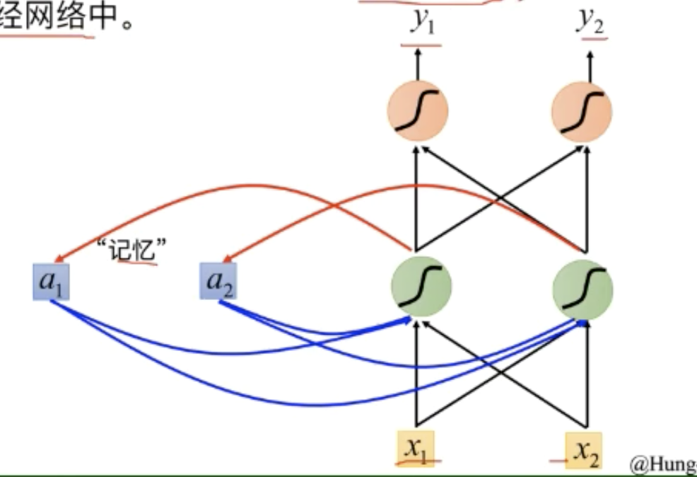 输出y不仅由当前的输入所决定,还会考虑到之前的“记忆”,有两者共同决定