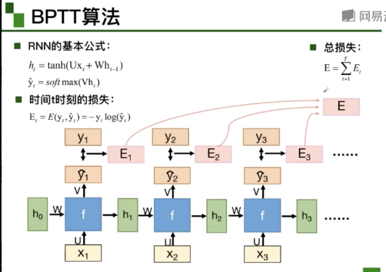 RNN在不同时刻共享同一组参数( U,W,V ),极大的减小了需要训练和预估的参数量