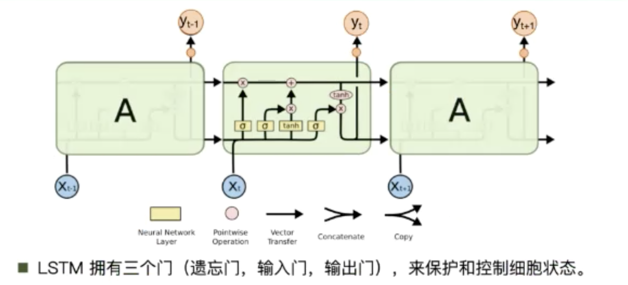 LSTM实现了三个门计算:遗忘门,输入门,输出门