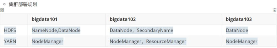 hdfs系统分配:101是namenode,接收客户端请求,保存元数据,当然了,这台机器空闲资源的时候,也可以做一些计算存储,给他分配一个datanode的角色。102数据主要用来存储数据内容存储数据块,同时存储block的元数据信息文件。我们同时给他分配一个secondaryName的角色,帮助namenode整理元数据信息。103分配一个datanode角色;