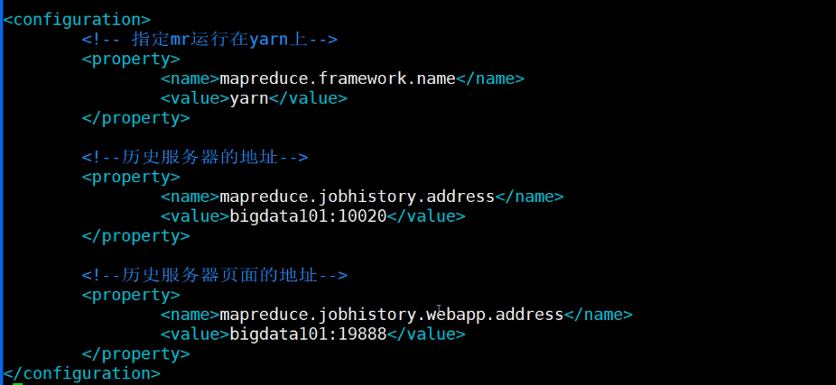 4,输入命令:vim mapred-site.xml ,修改配置文件如下: