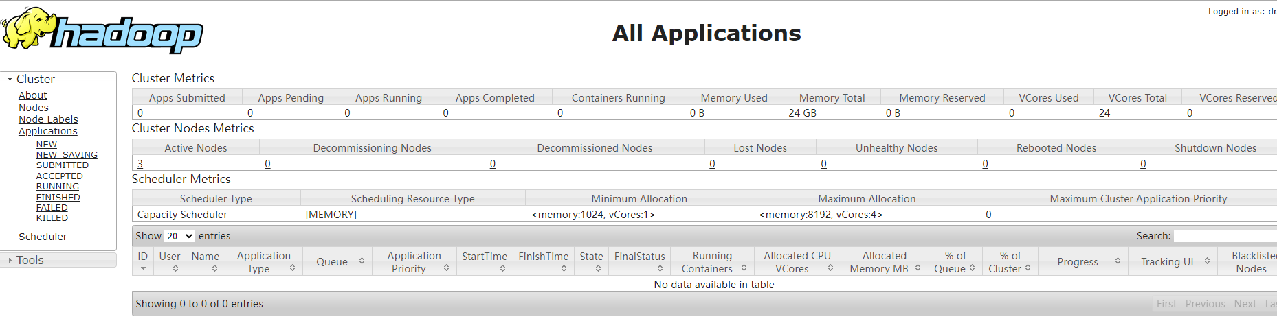 yarn:102机器负责这个集群资源调度和管理。其他的nodeManager会通过心跳协议向ResourceManager汇报所在节点的资源使用情况。