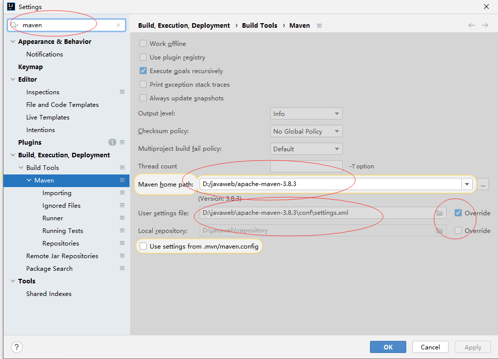 现在Hadoop集群已经搭建好了,也了解了Hadoop操作的一些基本命令。现在我们要用java操作Hadoop。这里我们使用的ide是IDEA和maven。IDEA的话去官网下载一个,用激活码激活就ok。maven我用的是3.83版本,下载安装就行。注意配置一下环境变量。在配置文件里面修改一下本地仓库位置。因为我们后续要使用java编写mapreduce,需要用到一些依赖包,所以这个黄金搭档ok。