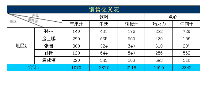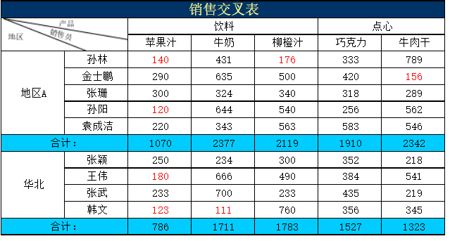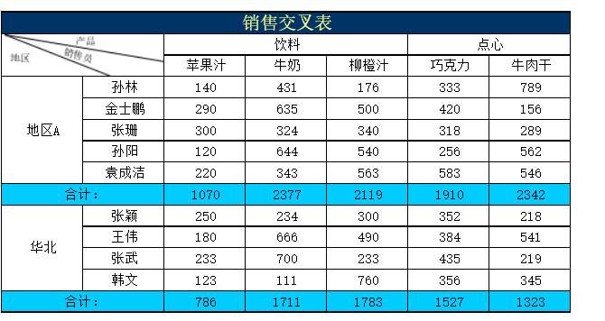 现在我们接到这么一个需求,在交叉报表中,我们看地区列,里面展示了各个地区,比如华东地区,华北地区,我们想换一种表达方式,比如华东地区,我们给他命名成地区A,华北地区命名成地区B。设置步骤如下:单元格颜色--数据设置--分组--高级--自定义。