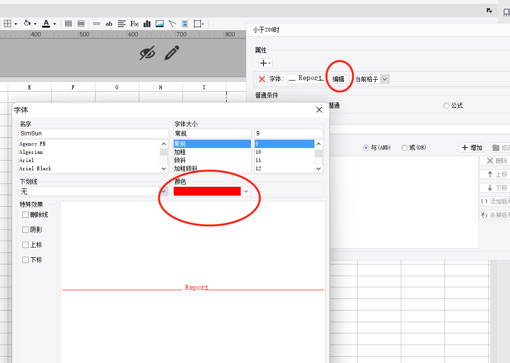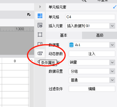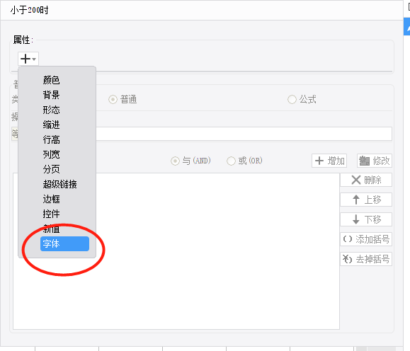 我们再设置一个预警值,对与销量再200以下的,我们给它标记成红色。首先选中销量单元格,右边选中条件属性:
