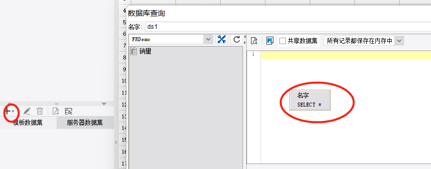 打开设计器,新建一张报表,以销量表为底表,设置一个数据集: