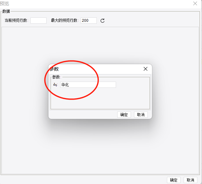 在弹窗中参数位置输入”华北“,点击”确定“,就能看见数据,然后点击”确定“