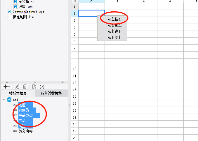 选中数据集中的字段,如果我们要连续拖拽多个字段的话,就不用一个一个去拖了,按住shift,选中多个字段,拖拽到报表里面,选中从左往右,就把选中的字段全部拖拽过来了。
