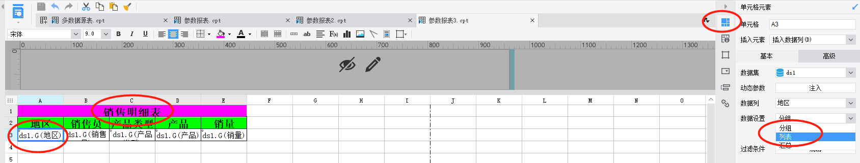 有时候我们并不需要看所有的数据,比如在销量表中,我们只想看”华北“地区的数据,这个时候我们就需要一个控件能帮助我们过滤掉其他的地区数据。这里我们就要从sql开始设置,我们首先要给sql添加一个参数,然后利用参数控制其他的条件。
