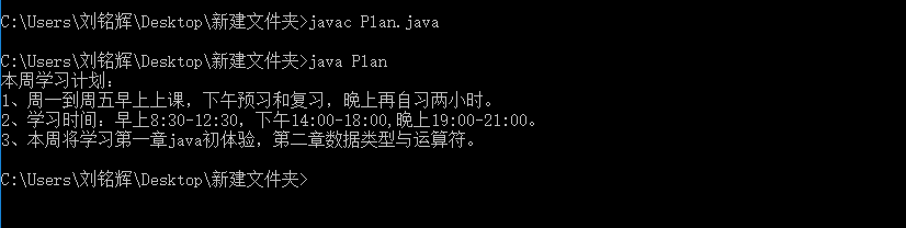 2.在记事本中编写Plan.java程序,输出你本周的学习计划。