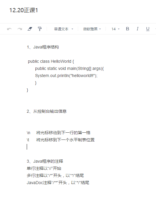 System.out.println("3、本周将学习第一章java初体验,第二章数据类型与运算符。");