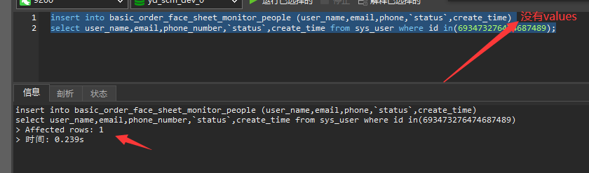 select user_name,email,phone_number,`status`,create_time from sys_user where id in(693473276474687489);