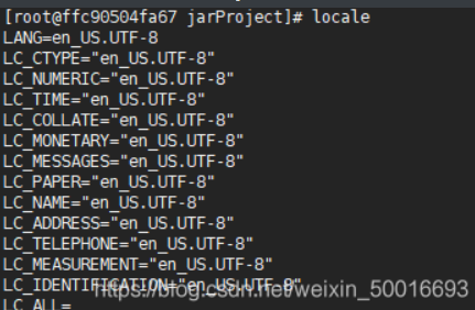 那么我们可以设置,需要在容器中vi /root/.bashrc设置环境变量:export LANG=en_US.UTF-8