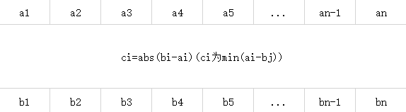 我们先对a,b两个数组求最小差值数组c,即ci=min(abs(ai-bj))。
