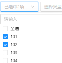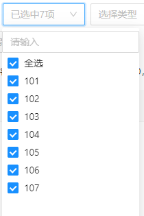 1 const { placeholder, data, getValueFromTabSelect, selectWidth } = props; 2 const [selectValue, setSelectValue] = useState(""); 3 const [selectData, setSelectDate] = useState([...data]); 4 const [checkedList, setCheckedList] = useState([...data]); 5 const [checkedAllList, setCheckedAllList] = useState([""]); 6 7 useEffect(() => { 8 for (let i = 0; i < checkedList.length; i++) { 9 checkedList.pop(); 10 } 11 }, []); 12 //onChanggeBox控制onCheckAllChange 13 const onChangeBox = (e: any) => { 14 if (e.target.checked) { //通过checkedList来控制勾选框 15 checkedList.push(JSON.parse(JSON.stringify(e.target.value))); 16 } else { 17 for (let i = 0; i < checkedList.length; i++) { 18 if (e.target.value === checkedList[i]) { 19 checkedList.splice(i, 1); 20 } 21 } 22 } 23 if (checkedList.length > 0) { 24 setSelectValue(`已选中${checkedList.length}项`); //控制Select组件的value属性 25 if (checkedList.length === selectData.length) { //通过onChangeBox来控制onCheckAllChange的勾选框 26 setCheckedAllList(["全选"]); 27 } else { 28 checkedAllList.splice(0, checkedAllList.length); 29 } 30 } else if (checkedList.length === 0) { //当value=null的时候,placeholder属性就可以显示出来 31 setSelectValue(""); 32 } 33 }; 34 //onCheckAllChange控制onChanggeBox 35 const onCheckAllChange = (e: any) => { 36 // console.log("e.target.checked:", e.target.checked); 37 if (e.target.checked) { 38 checkedList.splice(0, checkedList.length); 39 setCheckedAllList(["全选"]); 40 for (let i = 0; i < selectData.length; i++) { 41 checkedList.push(selectData[i]); 42 } 43 getValueFromTabSelect(data); 44 } else { 45 checkedList.splice(0, checkedList.length); 46 checkedAllList.splice(0, checkedAllList.length); 47 getValueFromTabSelect([]); 48 } 49 if (checkedList.length > 0) { 50 setSelectValue(`已选中${checkedList.length}项`); 51 } else if (checkedList.length === 0) { 52 setSelectValue(""); 53 } 54 }; 55 56 const dropdownRender = () => { 57 return ( 58 <div className="tab-select"> 59 <Checkbox.Group 60 value={checkedAllList}> 61 <Checkbox 62 onChange={onCheckAllChange} 63 value="全选"> 64 全选 65 </Checkbox> 66 </Checkbox.Group> 67 <div className="tab-select-scorll"> 68 <div className="tab-select-hidden-scorll"> 69 <Checkbox.Group 70 value={checkedList}> 71 {selectData.map((item: any, index: number) => { 72 return ( 73 <Checkbox 74 value={item} 75 onChange={onChangeBox}> 76 {item} 77 </Checkbox> 78 ) 79 })} 80 </Checkbox.Group> 81 </div> 82 </div> 83 </div> 84 ) 85 }; 86 87 return ( 88 <> 89 <Select 90 placeholder={placeholder} 91 value={(selectValue.length > 0 ? selectValue : null)} 92 showArrow 93 showSearch={false} 94 dropdownRender={dropdownRender} 95 dropdownMatchSelectWidth={200} 96 dropdownClassName="dropdown-class-name" 97 style={{ 98 width: (selectWidth ? selectWidth : 120), 99 }} /> 100 </> 101 )