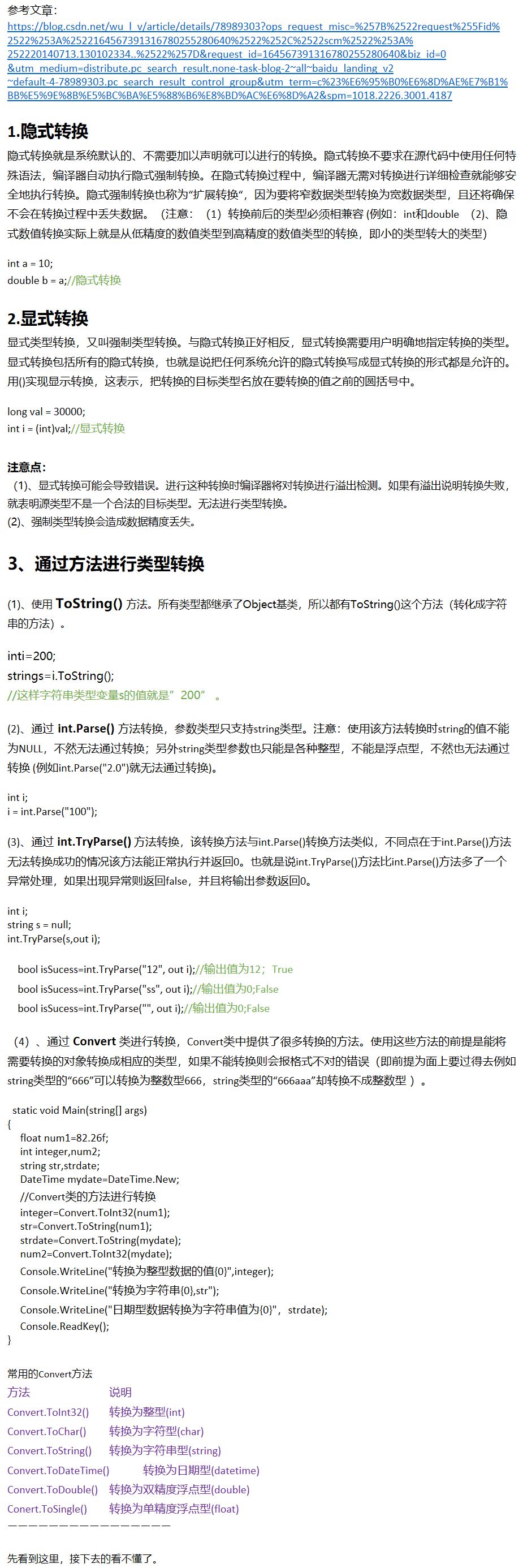 C#_数据类型转换总结