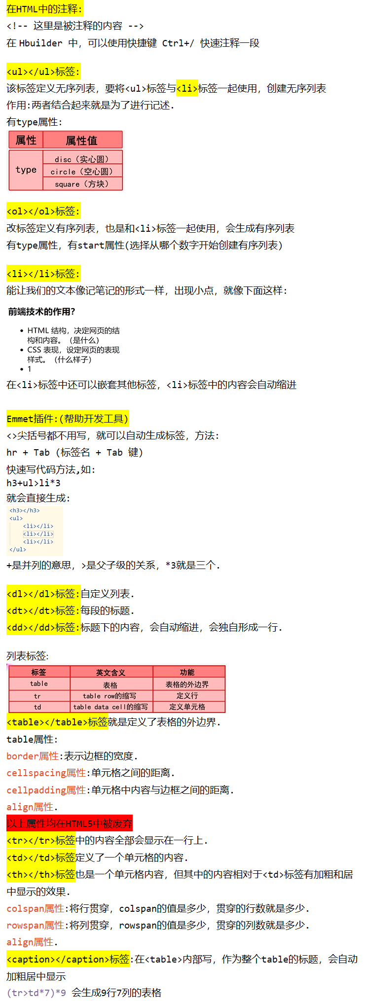 Day01 HTML列表和表格标签