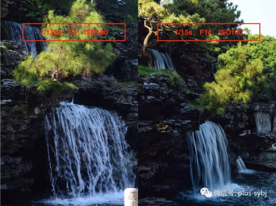 这两张照片放在一起更能体现我们这篇文章所讲的曝光组合,所以这里稍微详细的讲解一下。首先,两张照片的快门分别是1/125s和1/15s,所以可以看出来,第二张的快门比较慢,体现出来的流水会比较柔滑;其次,我们看看两张照片的光圈分别是F5和F14,为什么差这么多呢?原因是当时现场的光线很充足,但是我想拍摄比较慢的快门,让流水显得很柔滑,这就要求我的快门要慢一些,如果我只调整快门速度,由1/125s降到1/15,那照片的进光量将增加5倍,画面肯定就过曝了(快门速度越慢,进光量越多)。所以,我将光圈从F5缩小F14,光圈越小,进光量越少,最后两者一抵销,我就达到了我的目的。另外,当时我没有用三脚架,1/15s的快门很容易会手抖,所以我就找了根柱子,将相机侧靠在柱子上,尽可能的稳定相机。