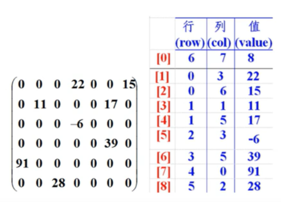 如下图:左边是原始数组,右边是稀疏数组