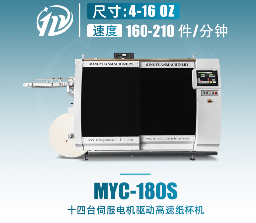全伺服纸杯机和传统纸杯机比起来,优势一用就知道。它的“心脏”是伺服电机,就像给机器装了精准的“大脑”和“手脚”,运行起来又稳又灵活。比如明源机械的MYC-180S智能型全伺服纸杯机,一分钟能做160到210个杯子,就算是另一款常规机型,每分钟也能出120到150个,对开工厂的老板来说,这效率直接关系到订单能不能按时完成。而且机器还装了PLC控制系统,就像有个“安全员”实时盯着,加上传感器故障检测,一旦出点小问题能马上提醒,减少机器停转耽误生产的时间。另外,机器用了油润滑循环系统、开式凸轮传动和全齿轮传动,这些设计就像给机器的“关节”上了最好的润滑油,转起来又准又稳,做出来的纸杯大小、形状都一样,不会出现有的歪有的扁的情况,废品少了,成本自然就降下来了。