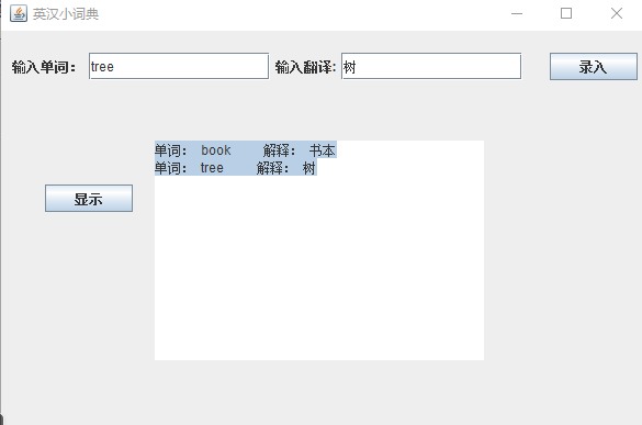 java swing 实现 英汉词典,读写操作