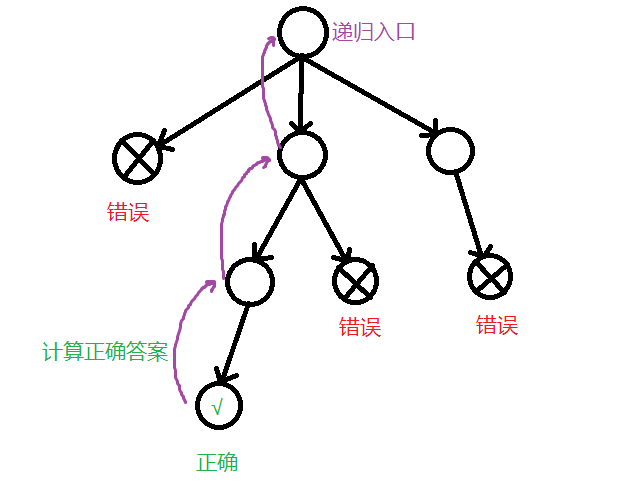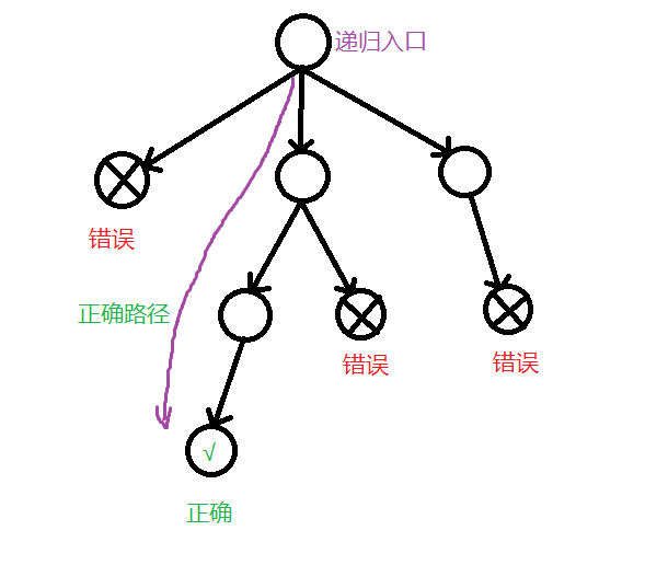 一个问题可能有很多解决的路径,但其中可能只有一条路径能够到达问题边界,我们需要去尝试所有的路径,去寻找哪条道路可以到达问题边界。