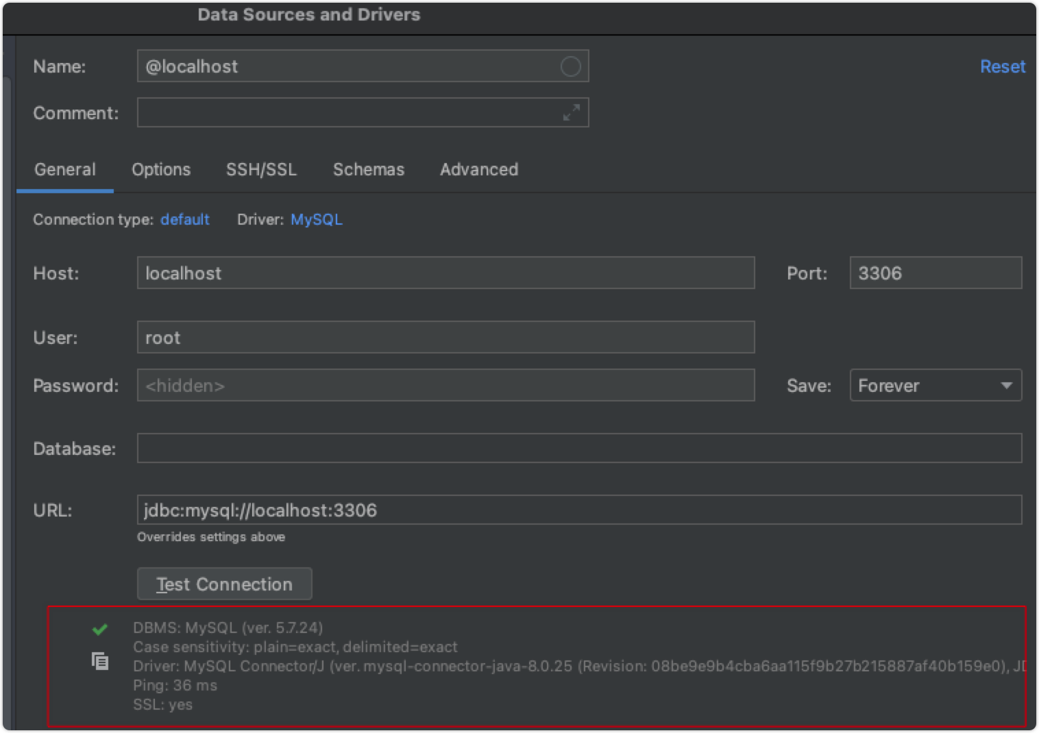 配置完上面的信息之后,就可以直接在外部连接到Docker中的Mysql容器了