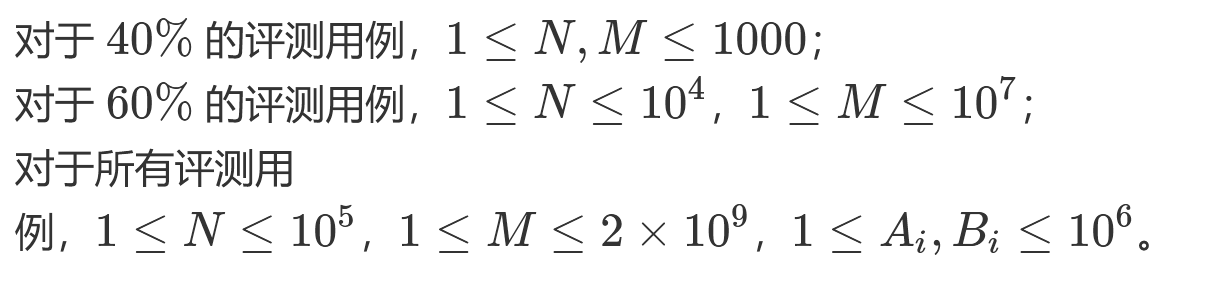 他的角色一共有 N 个可以加攻击力的技能。其中第i个技能首次升级可以提升Ai点攻击力,以后每次升级增加的点数都会减少Bi