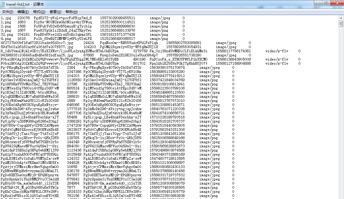 6、然而,我们在数据迁移(移动或复制)时只需要travel-list.txt中的第一列。使用Windows需要进行批处理,excel处理等,太麻烦。于是我将travel-list.txt 上传至linux服务器中,