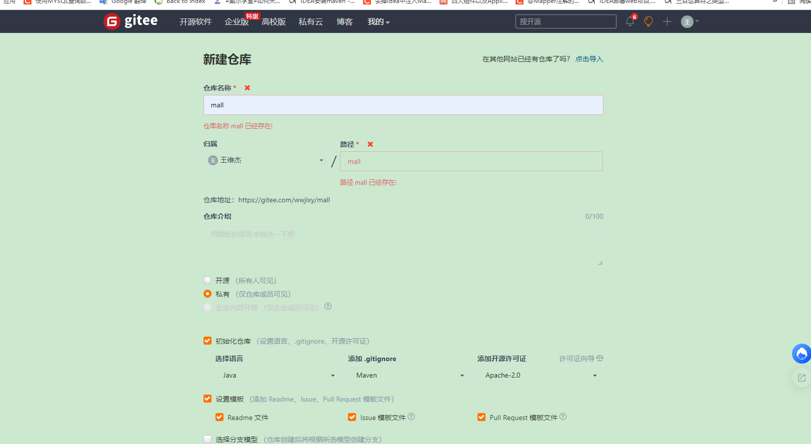 1 在码云新建一个空仓库