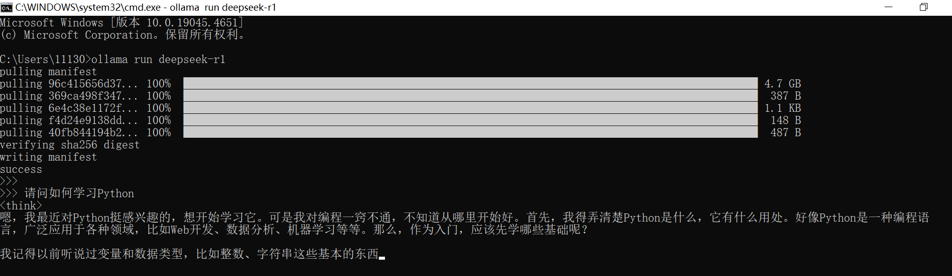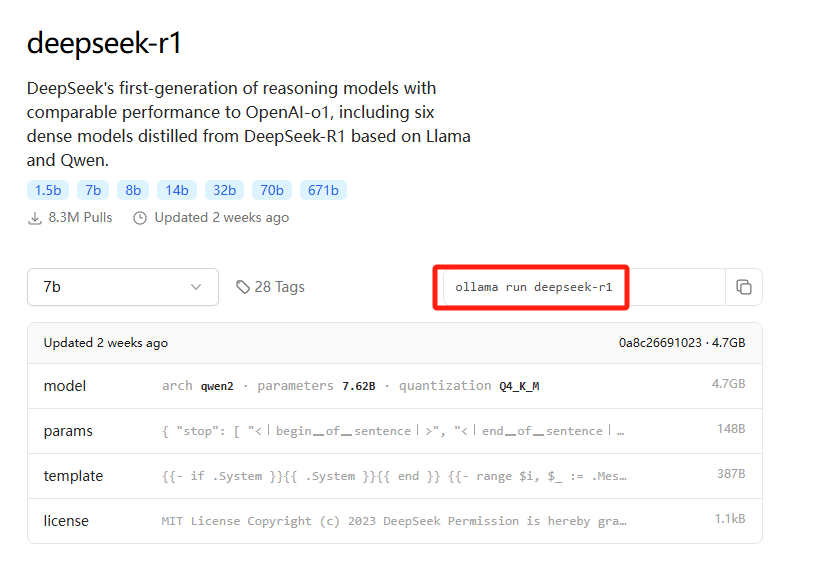 进入到如下的页面中,把 ollama run deepseek-r1 复制一下: