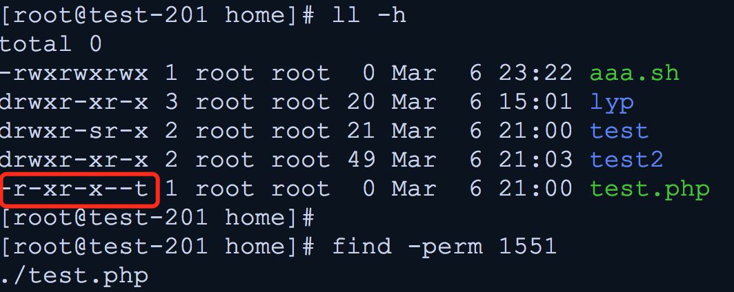10、查找有特殊权限1551的所有SBIT的文件:find –prem 1551
