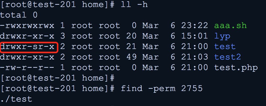 9、查找有特殊权限2755的SGID文件:find -perm 2755