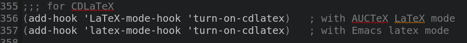 当然,你也可以在emacs的配置文件(.emacs.el or .emacs.d/init.el)中加入如下设置,让其在LaTex-mode下自动打开CDLaTeX-mode: