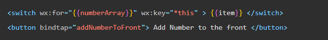 然后我们点击"Add Number to the front" 按钮 触发添加switch函数(其实是在js的data中的numberArray中加了一条数据),结果如图所示: