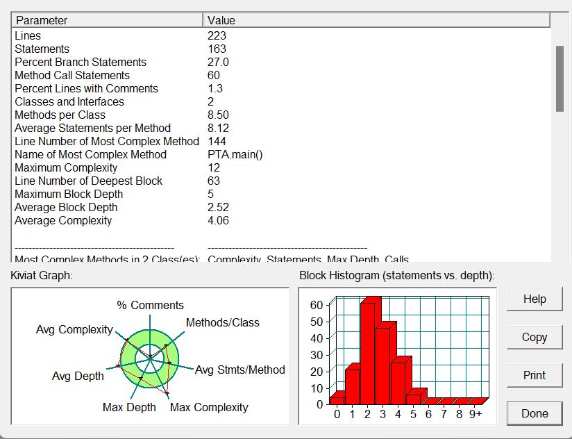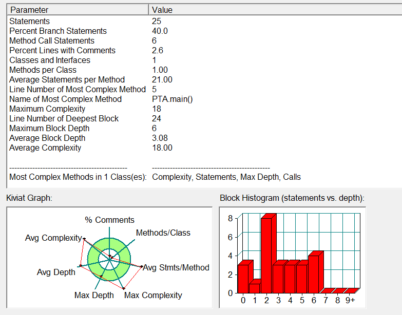 改进建议:根据SourceMonitor的软件分析,这道题的代码的圈复杂度为18,说明代码还存在一定缺陷,其本质上就是用多了for循环,对代码进行分析后发现,“判断输入的三个值是否能构成三角形”这一环节可以不用for循环,这样就降低了代码的圈复杂度。以后还是要多学习通过构造方法来解决判断问题,这样 就有助于代码圈复杂度的降低。