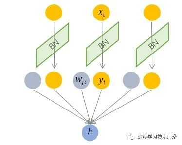 经过规范化之后的y 作为输入送到下一个神经元,应用以 w 为参数的fw(·) 函数定义的变换。最普遍的变换是线性变换,即
