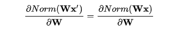 上述规范化方法均有这一性质,这是因为,当权重 W 伸缩时,对应的均值和标准差均等比例伸缩,分子分母相抵。
